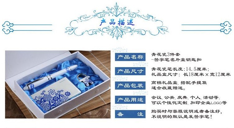產(chǎn)品配置:仿瓷筆+名片盒+鑰匙扣