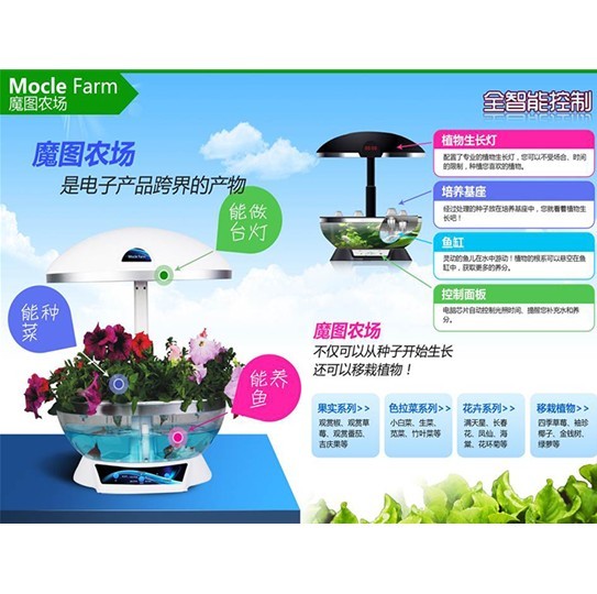 1、以移栽為主,進(jìn)行水培馴化種植,干凈、美觀、好玩!(可移栽各種花卉、草莓等植物) 2、包裝尺寸:460mm*365mm*325mm 長(zhǎng)×寬×高 3、產(chǎn)品尺寸:410mm*300mm*620(460)mm 長(zhǎng)×寬×高(可以伸縮,高度可以調(diào)節(jié)) 4、顏色:白色+透明(可定制黑色, 材料:ABS+PC) 5、功率29瓦 220VAC/50Hz或者 110VAC/60Hz(植物生長(zhǎng)燈1支) 6、配置了7個(gè)迷你移栽槽(移栽植物為主) 7、魚(yú)缸(建議養(yǎng)3-6條小紅鯉魚(yú)) 8、智能澆灌系統(tǒng) 9、自動(dòng)提示功能 10、智能時(shí)鐘系統(tǒng) 11、可購(gòu)買(mǎi)種植套件升級(jí)為增強(qiáng)版