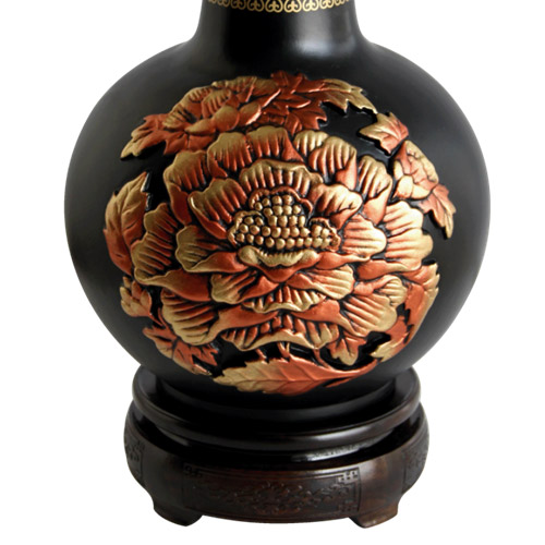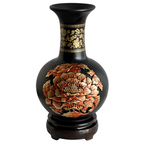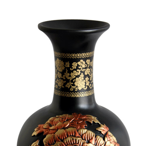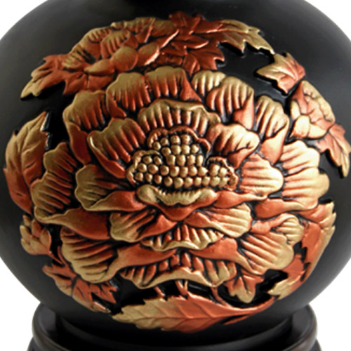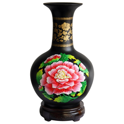 寓意:雍榮華麗,是盛唐的國(guó)色天香,是帝王的鐘愛尊賞,是中華傳統(tǒng)文脈中中庸、大度、仁愛、敦厚的富貴吉祥之花。此款天球瓶,以屬水,聚財(cái)?shù)暮谏鞯祝宰辖稹ⅫS金貼面,旺財(cái)納福,有著低調(diào)而鼎盛財(cái)氣。