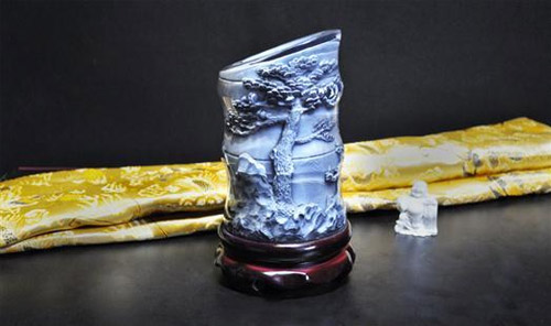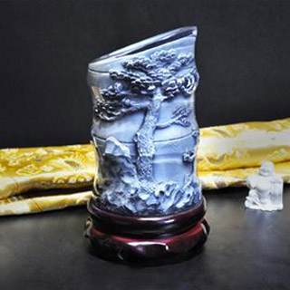 本竹節筆筒采用竹子造型,節節增高,象征生活美好。筒身刻歲寒三友,象征堅強如意。