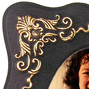 歐紋相框 寓意:典型的歐紋團,極具氣韻與質感的內斂神韻,透露著神秘而瑰麗的童話色彩。以厚實的炭做背景,擯卻現代浮華,更顯雍容華貴。