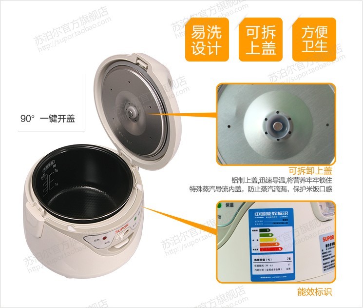 產(chǎn)品名稱:Supor/蘇泊爾 CFXB16YA3-36 品牌: Supor/蘇泊爾 型號: CFXB16YA3-36 顏色分類: 白色 鍋煲容量: 3L以下 控制方式: 機(jī)械式 電飯煲多功能: 煲仔飯 內(nèi)膽材質(zhì): 其它 電鍋煲功率: 600W以下 售后服務(wù): 全國聯(lián)保 外觀造型: 圓形煲 電飯煲加熱方式: 底盤加熱 液晶顯示: 無 適用人數(shù): 1-2人