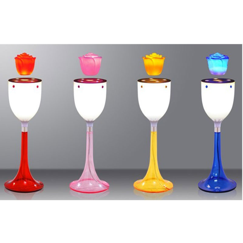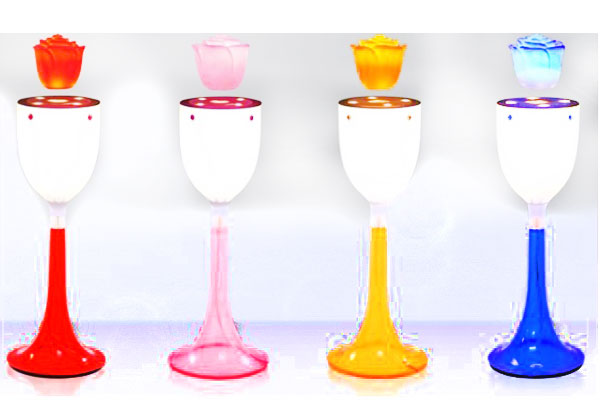 產(chǎn)品材質(zhì):懸浮物-糖膠;燈杯-ABS+亞克力 產(chǎn)品描述:高腳酒杯LED臺燈,配玫瑰花夜燈,寓意浪漫、溫馨、愛心永恒 產(chǎn)品規(guī)格:上懸浮物:90*90MM;紅、黃、藍(lán)三色