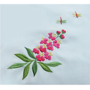 廣繡是珠江三角洲民間刺繡工藝的統(tǒng)稱,廣繡與蜀繡、湘繡、蘇繡并稱中國四大名繡。于2006年列入第一批國家非物質文化遺產(chǎn)名錄,具有極高的收藏價值。廣繡所使用的基本材料有絲絨、真絲、金線、銀線、金絨混合等幾大類。其中金銀繡獨具裝飾性,構圖飽滿勻稱,色彩輝煌,顯得富麗華貴。以其構圖飽滿,形象傳神,紋理清晰,色澤富麗,針法多樣,善于變化的藝術特色而聞名于世。廣繡多以龍鳳、花卉、禽鳥、水族、人物為主要題材,花紋繁密、瑣細,雖色彩十分強烈,但因花朵細碎,彼此相互吸收,形成和諧統(tǒng)一,獨具風格的藝術效果。色彩斑斕的廣繡以其極富裝飾性為藝術特色,是嶺南地方特色的傳統(tǒng)工藝美術品。廣繡包括有真絲繡、線繡、珠繡和釘金繡四大類。