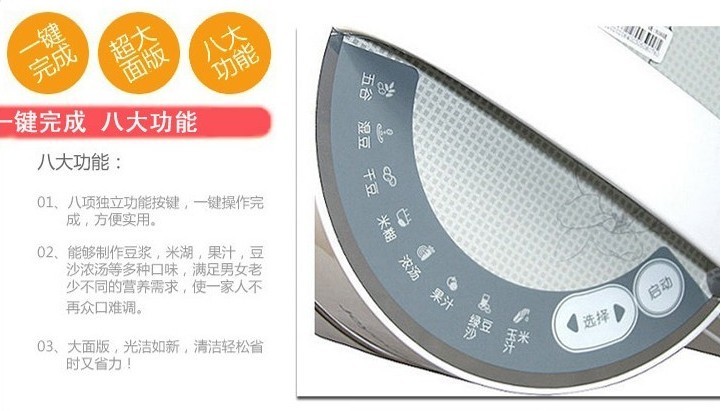 家電品牌:九陽 顏色分類:白色 容積:1L-1.5L 豆漿機功能:干豆 濕豆 米糊 五谷 杯體材質:不銹鋼杯體 是否有網:無網 豆漿機功率:751-1000W 售后服務:全國聯保 豆漿機加熱方式:底盤加熱 自動清洗功能:無 保溫功能:有 適用人數:4-5人