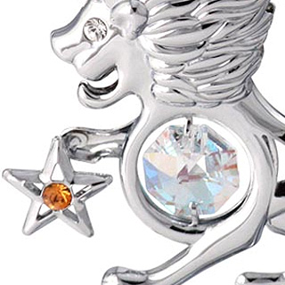 【商品名稱】 獅子星座–擺件 【商品編號】 U0261-001-CAB 【商品材料】 SWAROVSKI® ELEMENTS(施華洛世奇®元素)+日本高級合金鋼 【產品規格】 7x7.9cm 【產品顏色】 金色、銀色