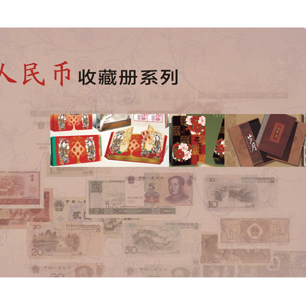 冊內裝幀第五套人民幣紙幣:100元、50元、20元、10元、5元、1元;硬幣:1元、5角、1角;
