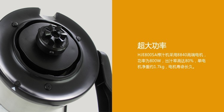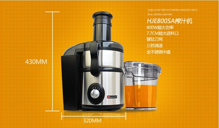 產品名稱:Hauswirt HJE800SA 品牌:Hauswirt 型號:HJE800SA 榨汁攪拌料理機功率:800W及以上 一次性最大出汁量:1001-1500ml 果肉渣滓盒容量:1501ml-2000ml(含2000ml) 加料口形狀:圓形 榨汁機最高轉速:22001轉/分及以上 榨汁機附加功能:碎冰 攪拌 制奶昔 機身材質:金屬
